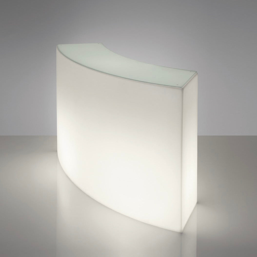 Snack Bar is a modular and luminous bar counter that is able to create a perfect blend of shape and functionality. As the other luminous display that make Slide famous all over the world, Snack Bar can be a reception desk or a bar counter. A single Snack Bar is ideal to small areas, many Snack Bar, matched with other luminous displays are ideal in large spaces. Snack Bar is suitable for indoor and outdoor of contemporary settings. The modular and luminous bar counter is made in polyethylene and it is customizable with logos and images.