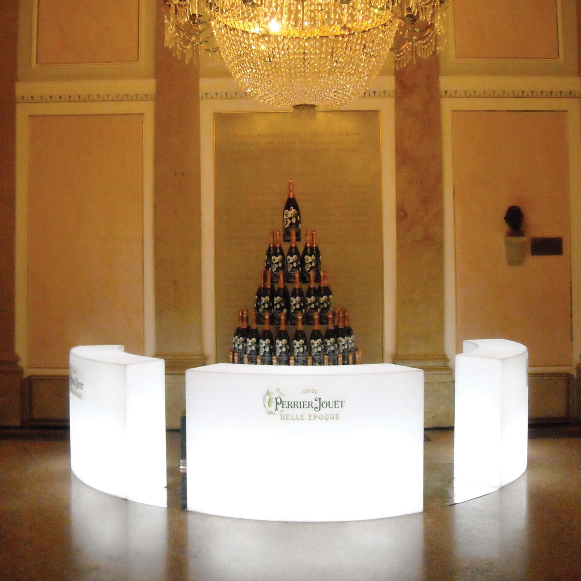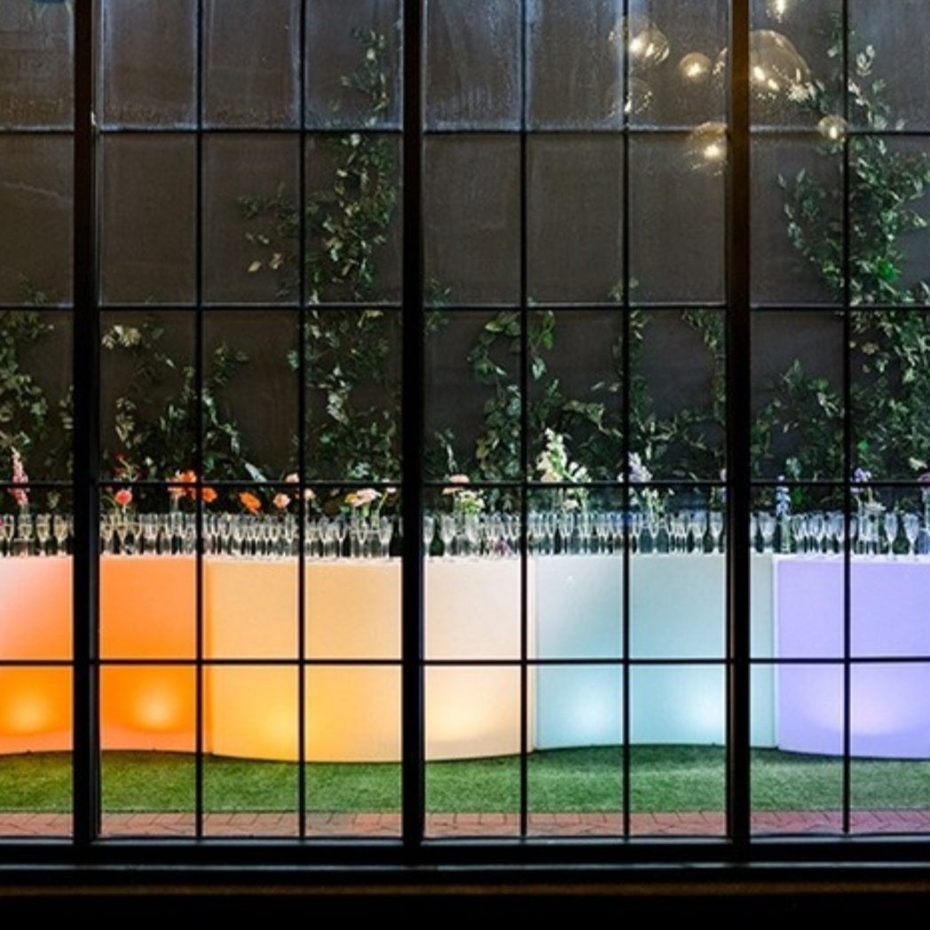 The Break Bar Collection offers modular and luminous bar counters that bring elegance and functionality to any event. Durable, customisable, and easy to configure, these bars are perfect for creating eye-catching setups for both indoor and outdoor occasions.