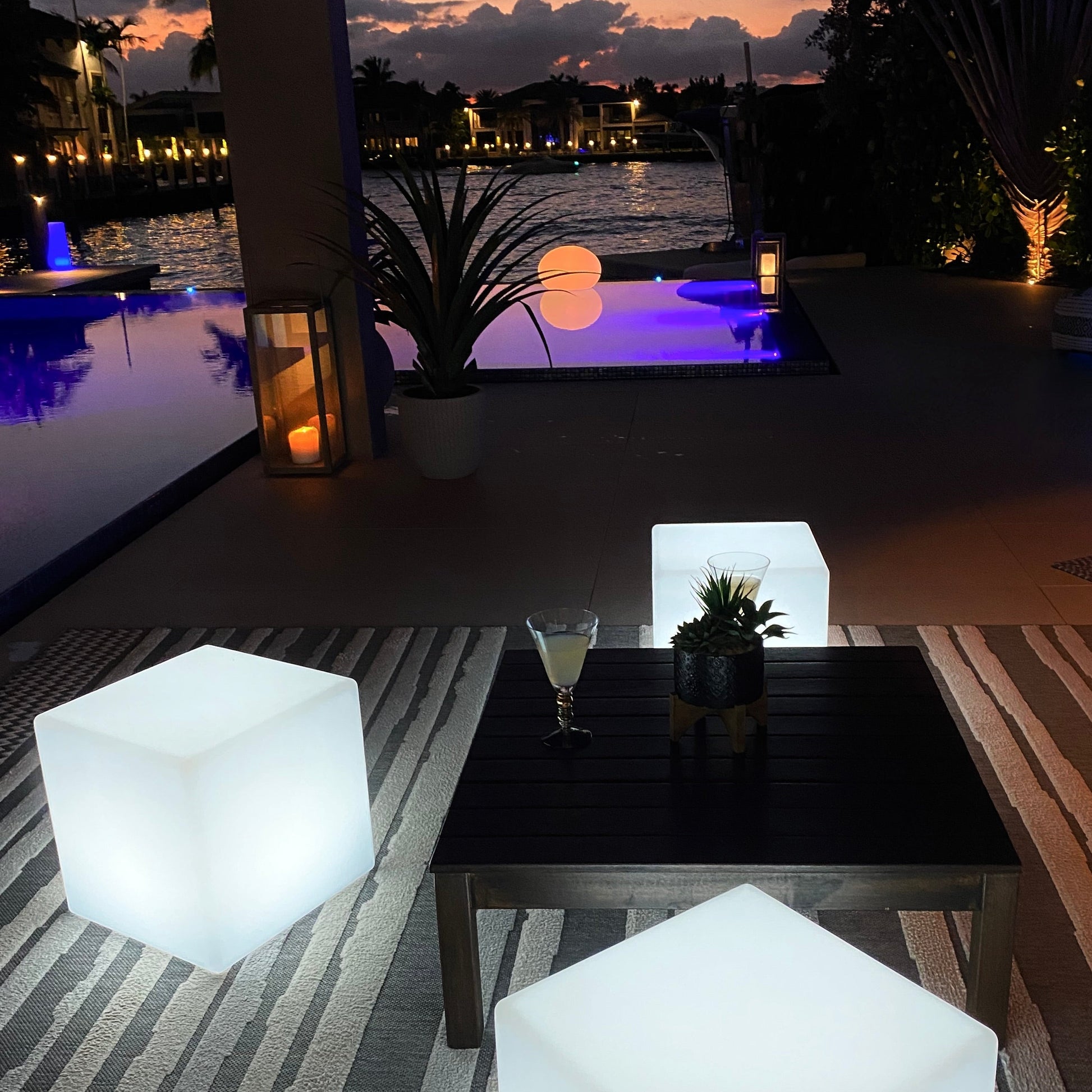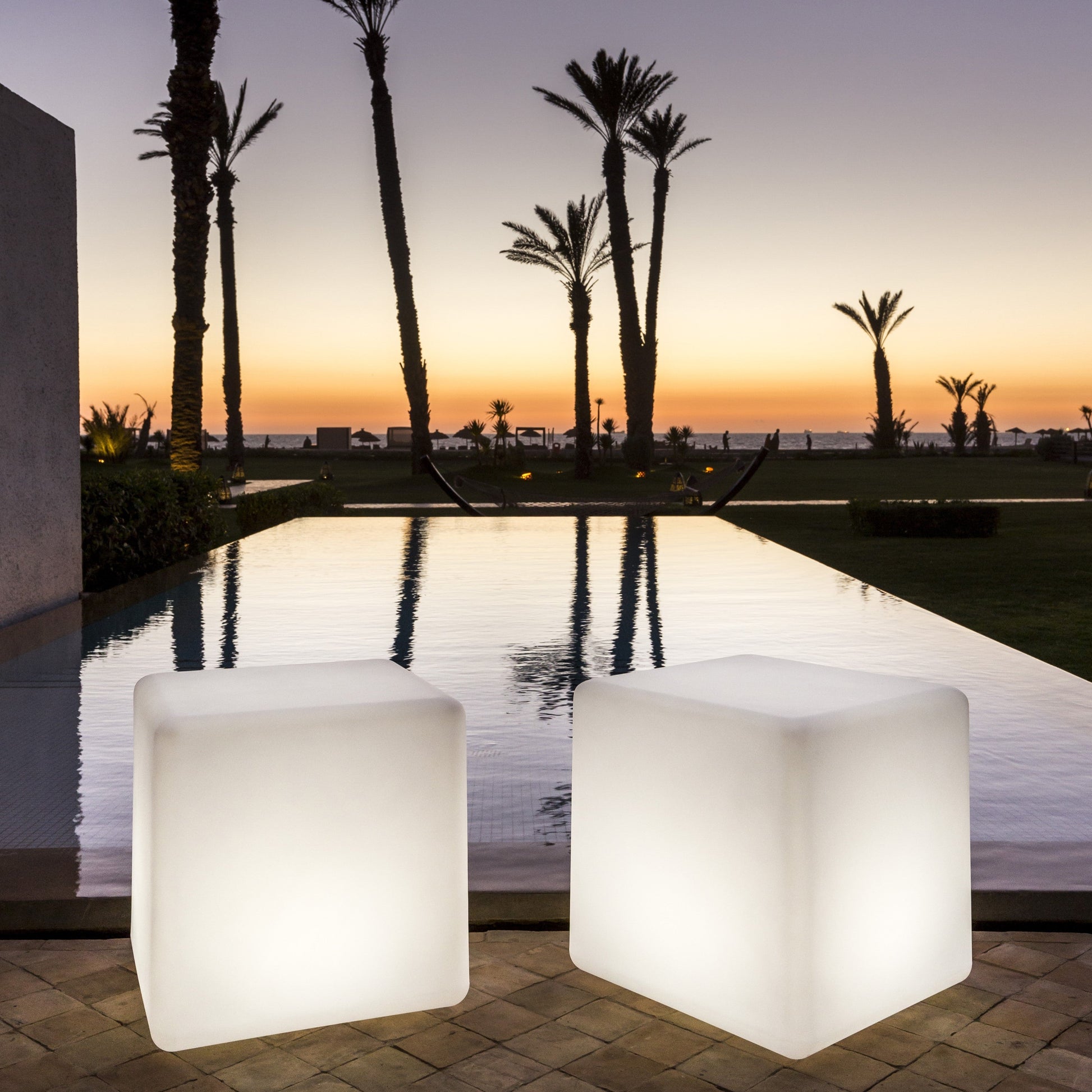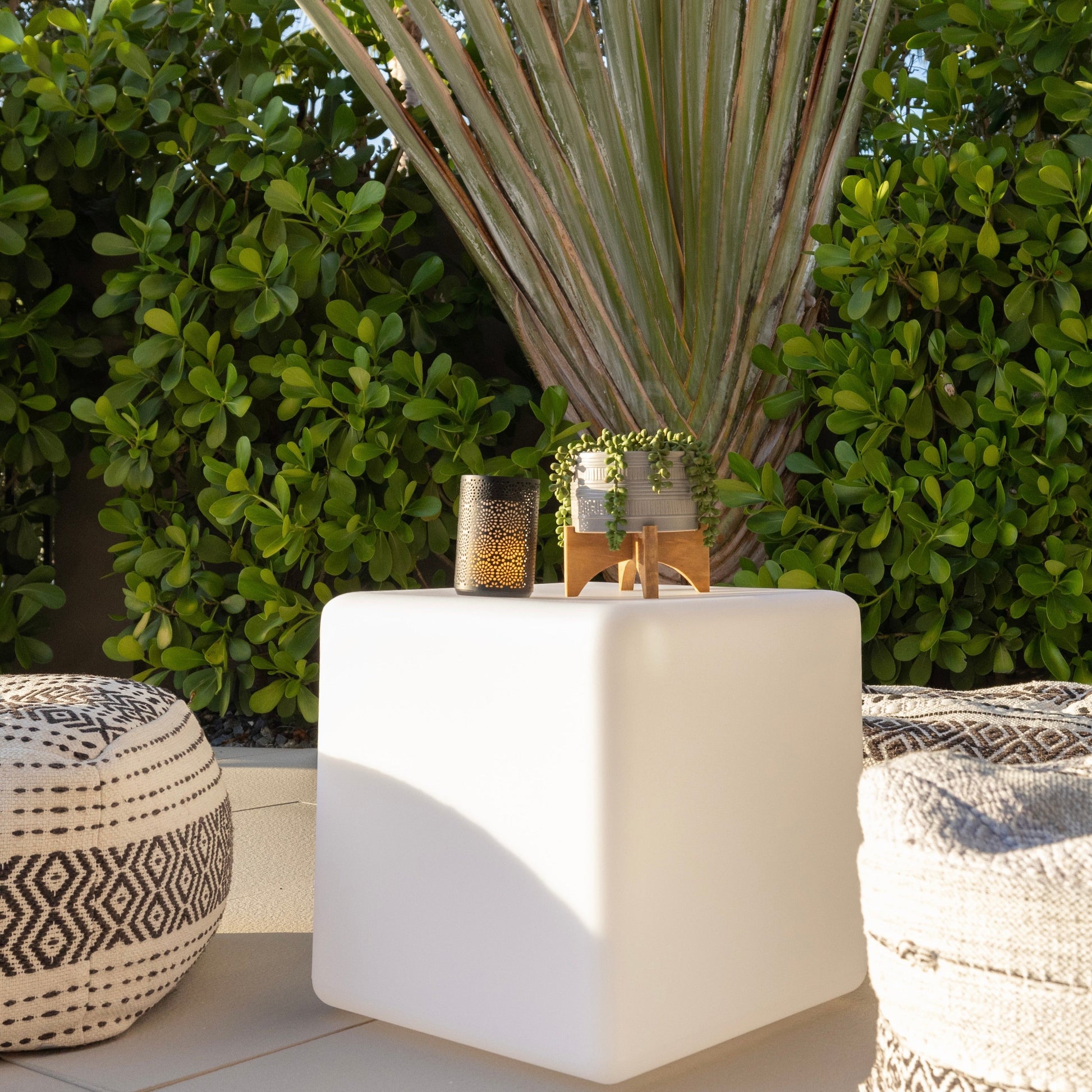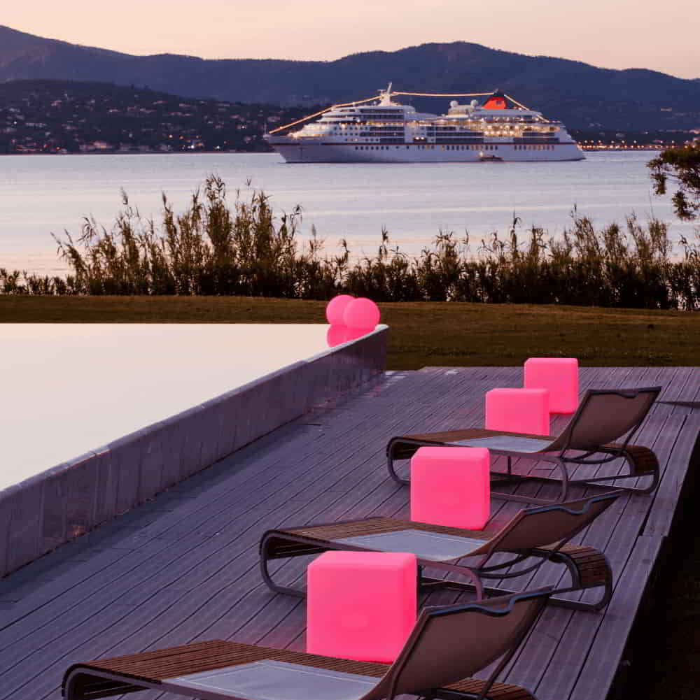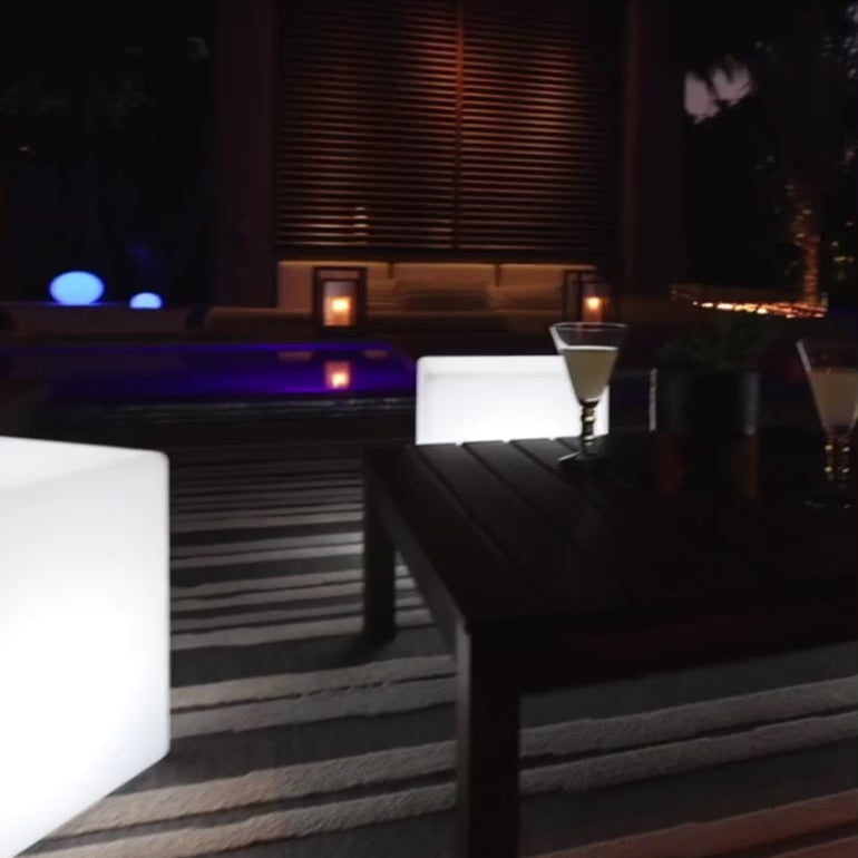 Bluetooth, cordless, rechargeable, durable, and waterproof, the Smart & Green LED CUBE stands out by its rounded edges providing a sleek, and a perfect elegant design. On a terrace, in a sitting room or in the pool, it easily adapts to all your spaces. Its wireless Bluetooth SmartMesh® technology allows you to control the brightness and colors of your light via your smartphone or tablet. You can also connect multiple lamps covering up to 1 mile and schedule lighting on/off scenarios. Managing the ambiance lights has never been so easy!