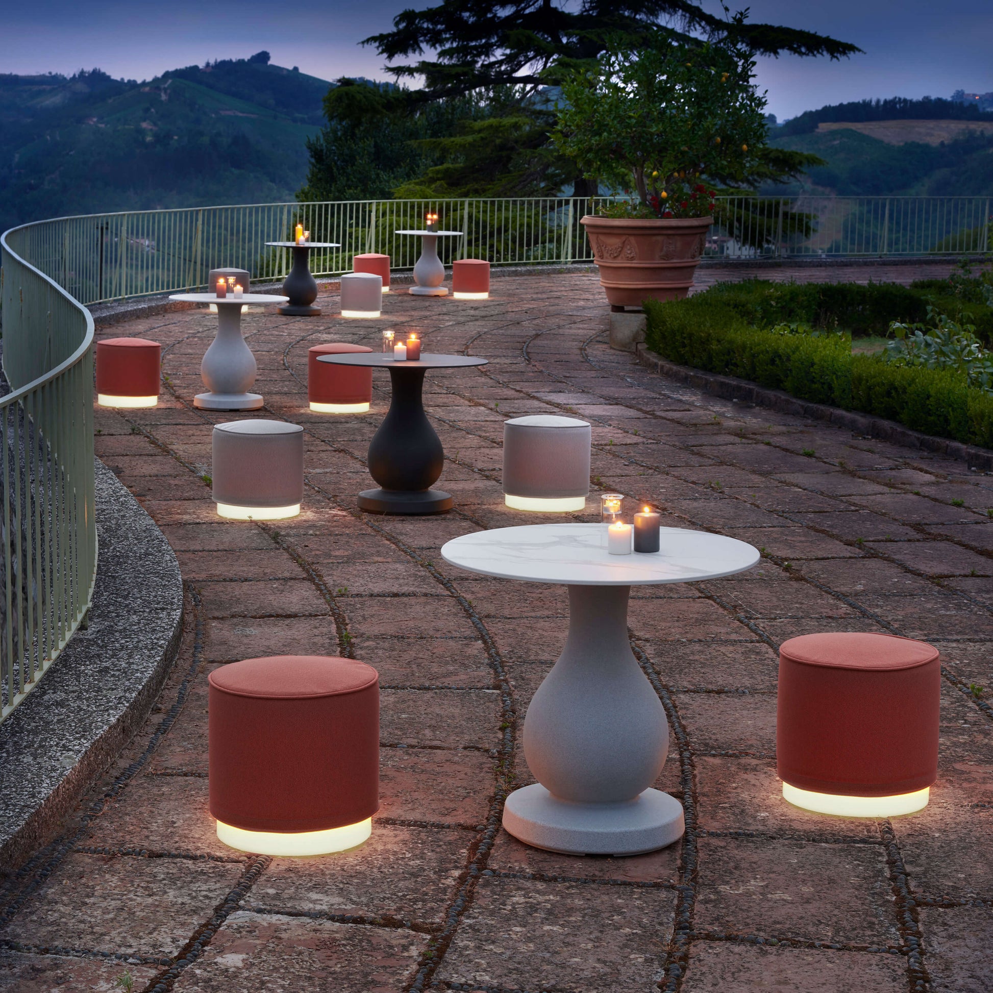 Thanks to its waterproof cushion and its essential design, Mara Pouf is the perfect item to furnish with elegance and semplicity. Mara Pouf is ideal to complete Mara Collection, composed by Mara lounge armchair and Mara Sofa loveseat. The base of Mara Pouf is made in polyethylene and it is covered by a cushion with the same fabric of the other items of the collection. The seat is very comfortable, thanks to the cushion made in polyurethane foam. The base is available also in the luminous version: Mara Pouf can be completed by Bluetooth Candy Light RGB Led module.