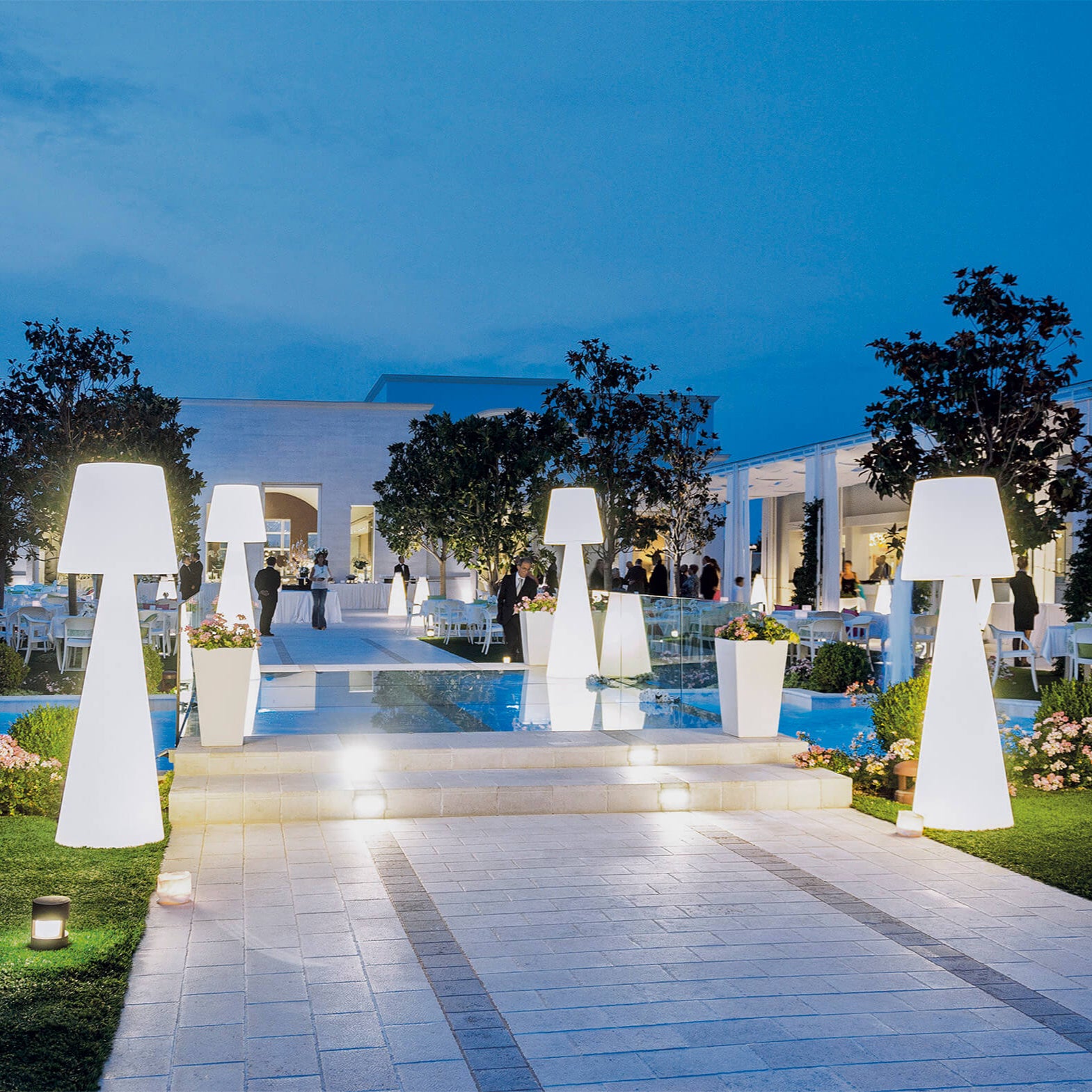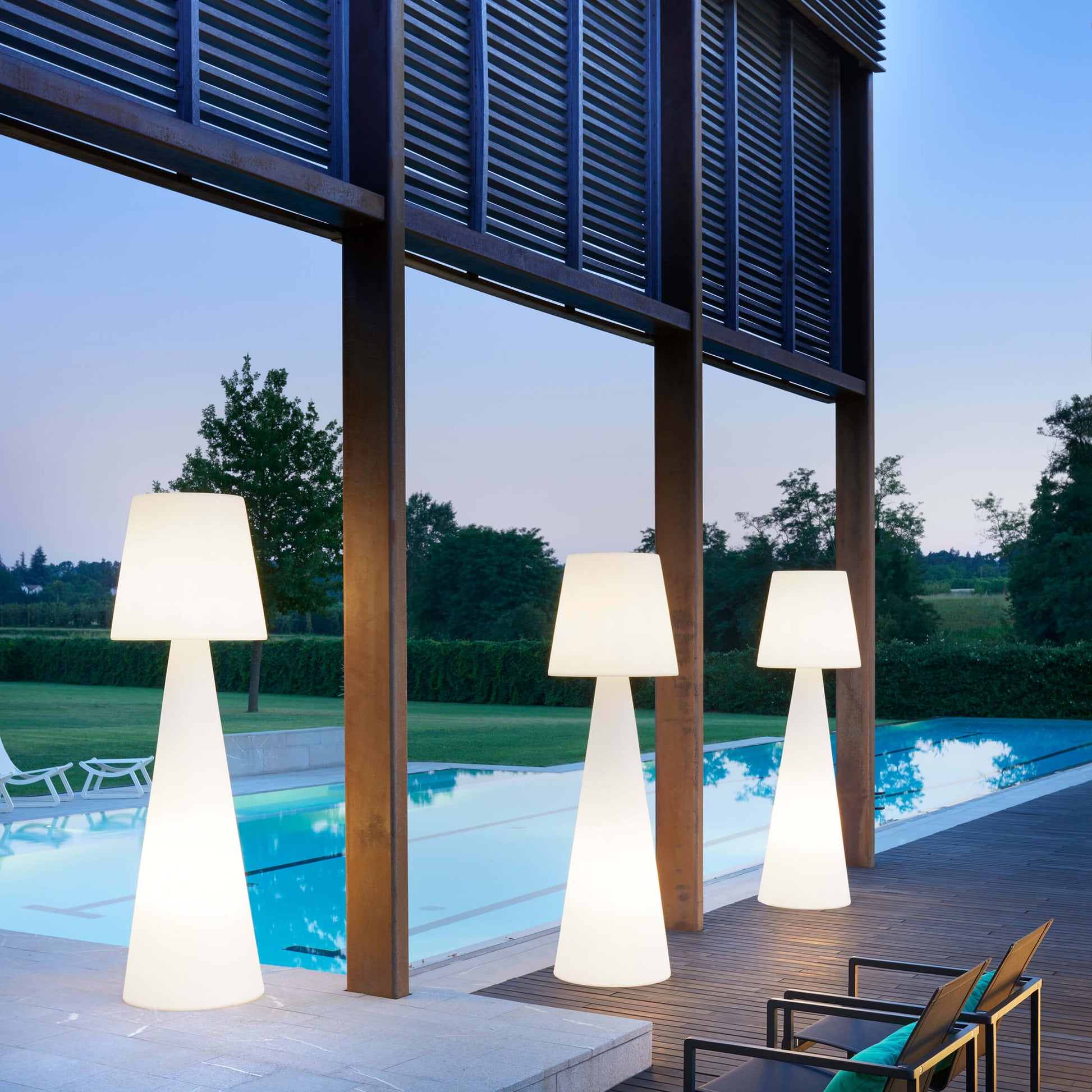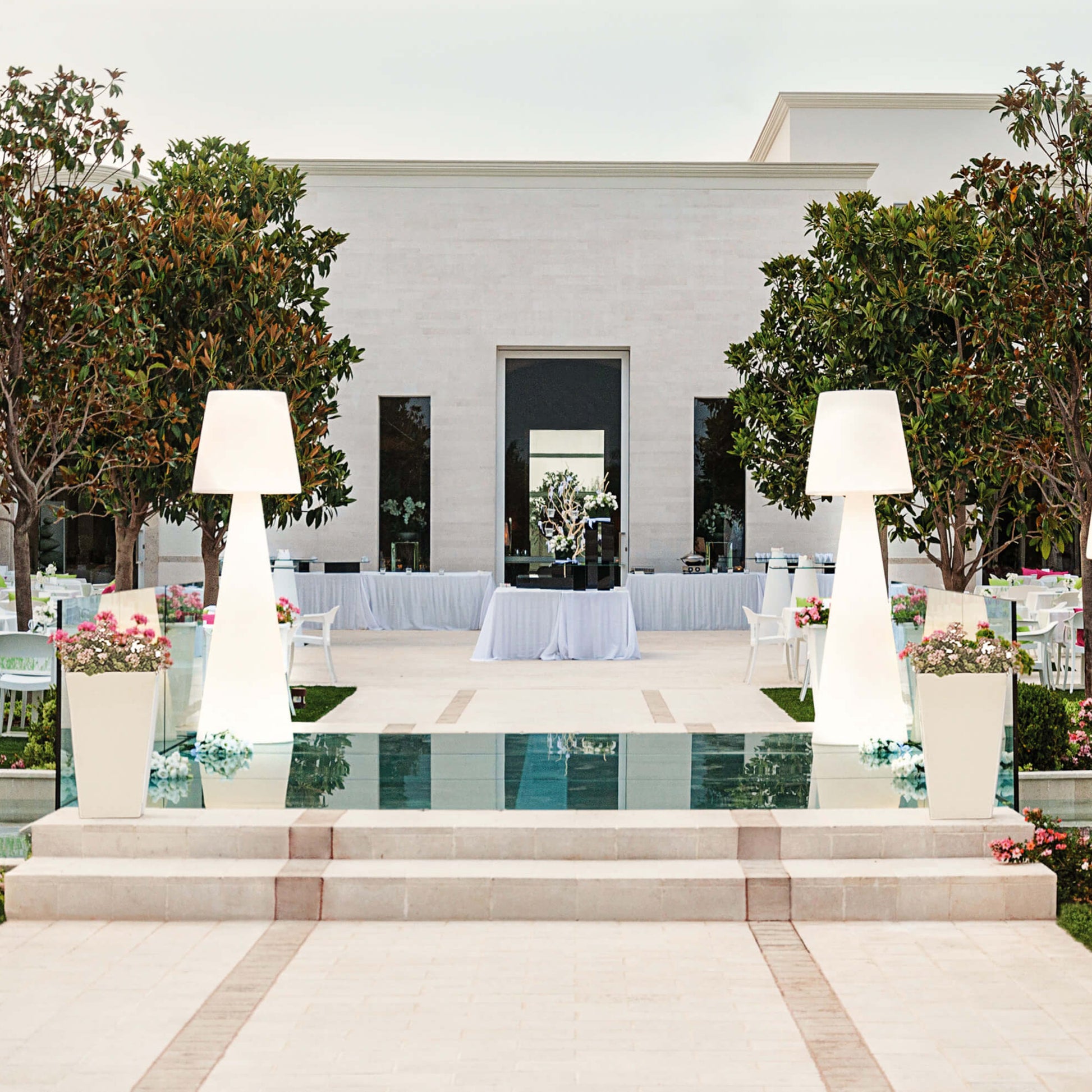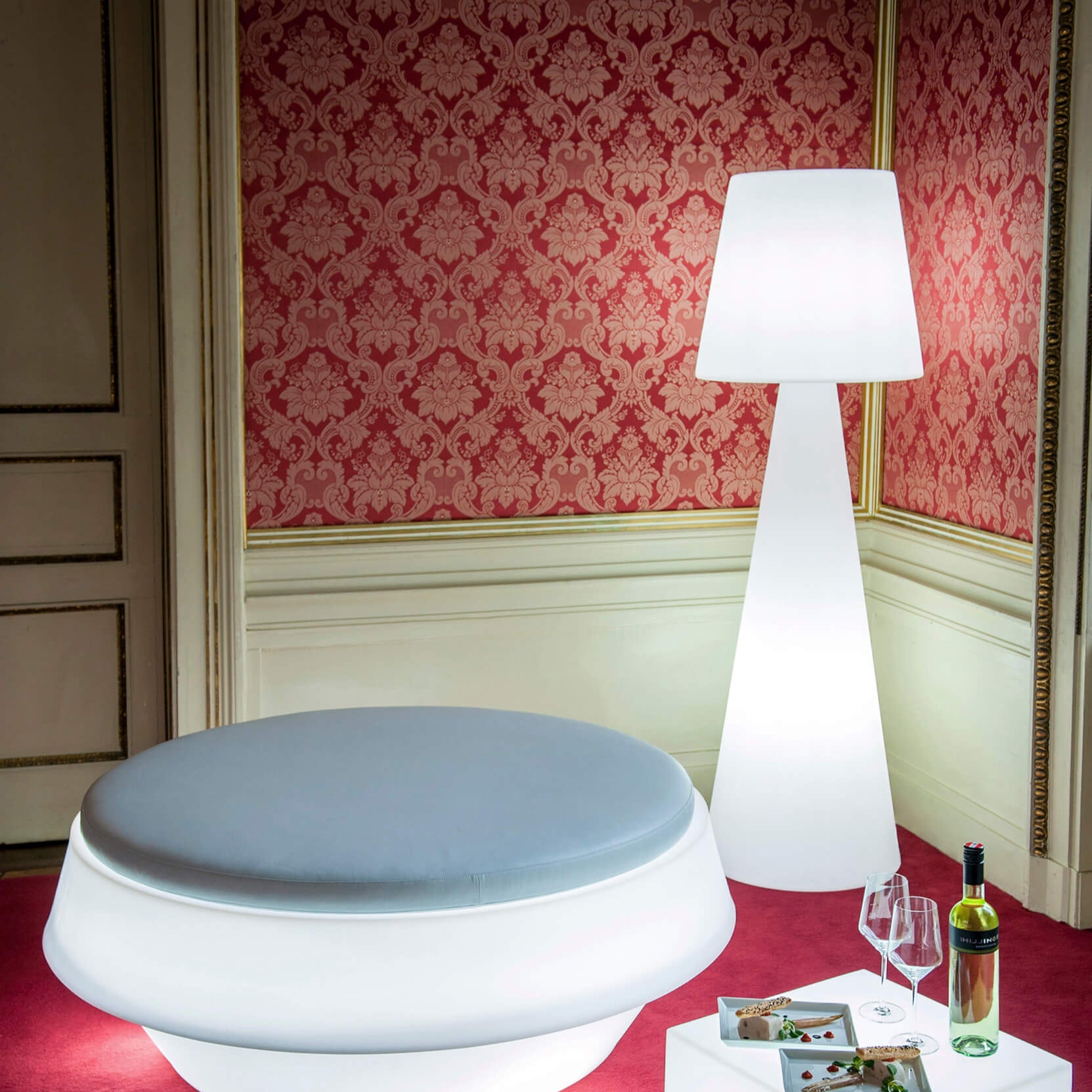 Pivot floor lamp is a best seller of the whole Slide production, thanks to its simple but unforgettable design. Pivot gets born from the collaboration between Carlo Constantini and SLIDE Studio. Pivot is available in different dimensions. Its linear design is the result of the perfect mix between the conical shape of the base and the classic shape of the lampshade. The main characteristic of Pivot is the texture on its lampshade, which reminds of the classical arabesque motif: Pivot makes richer every kind of indoor and outdoor settings, ideal to contemporary and elegant furnishing of contract and events. Pivot can be lighted up with two Candy Light system.