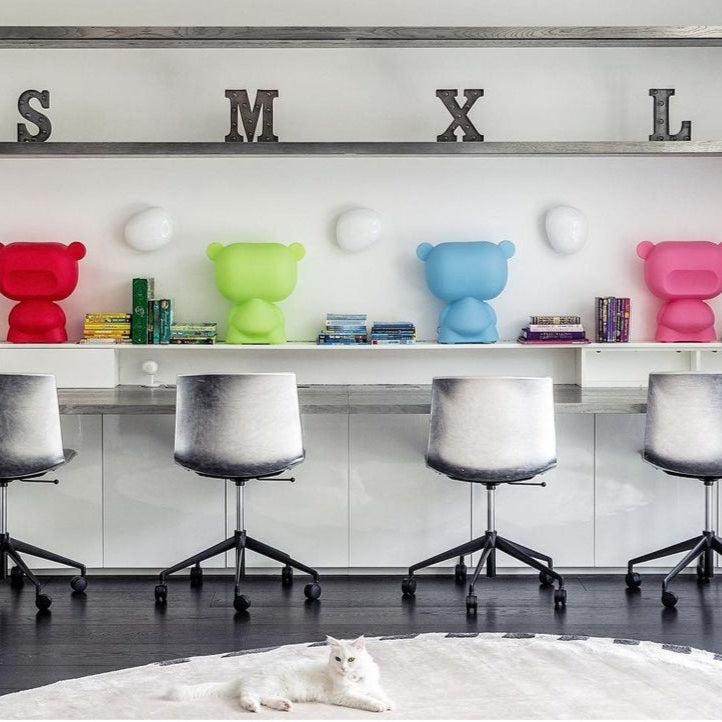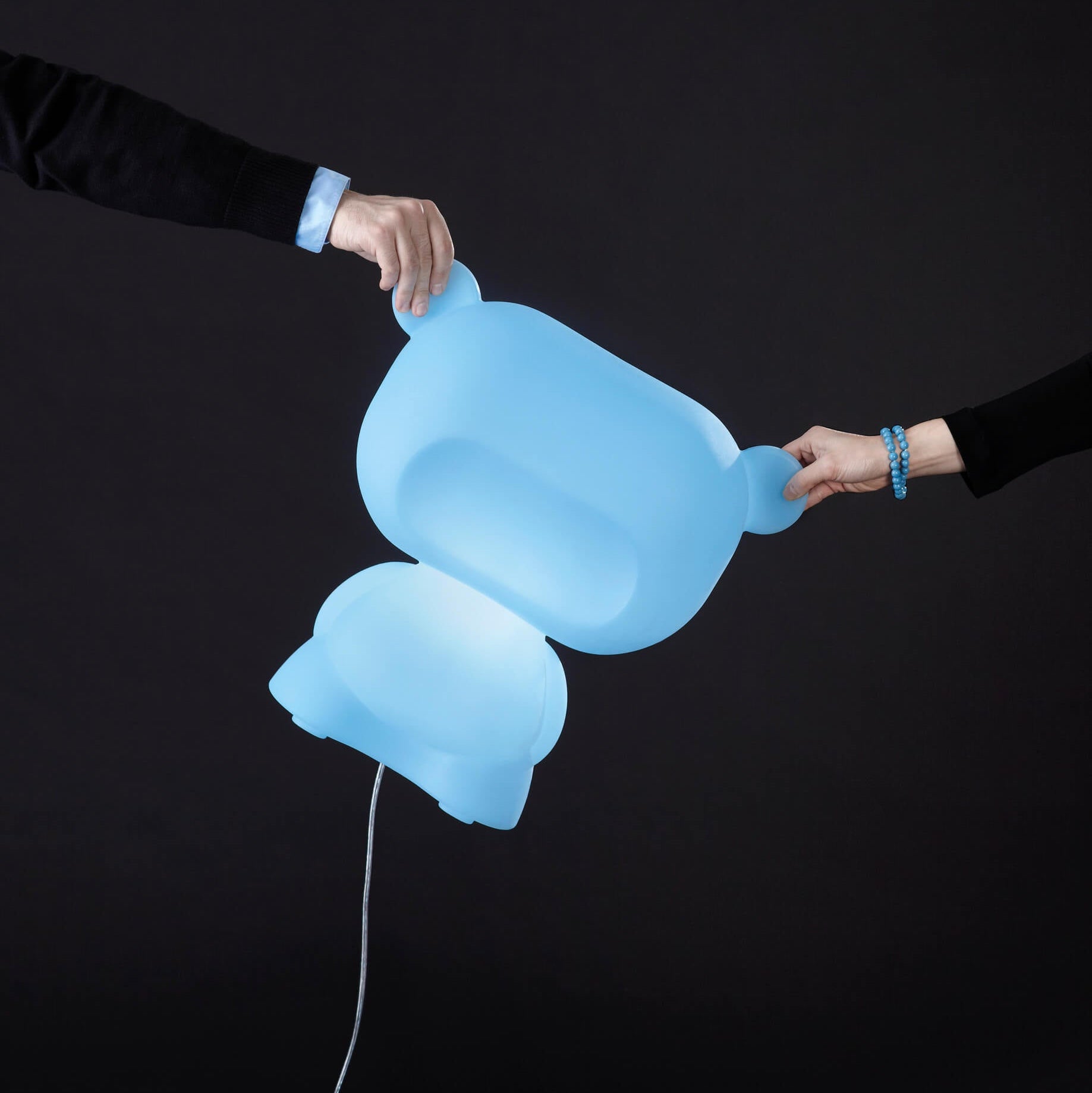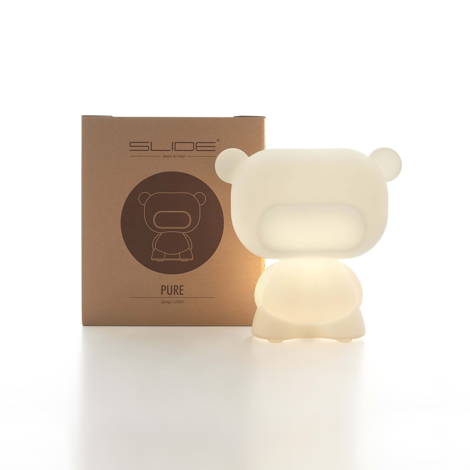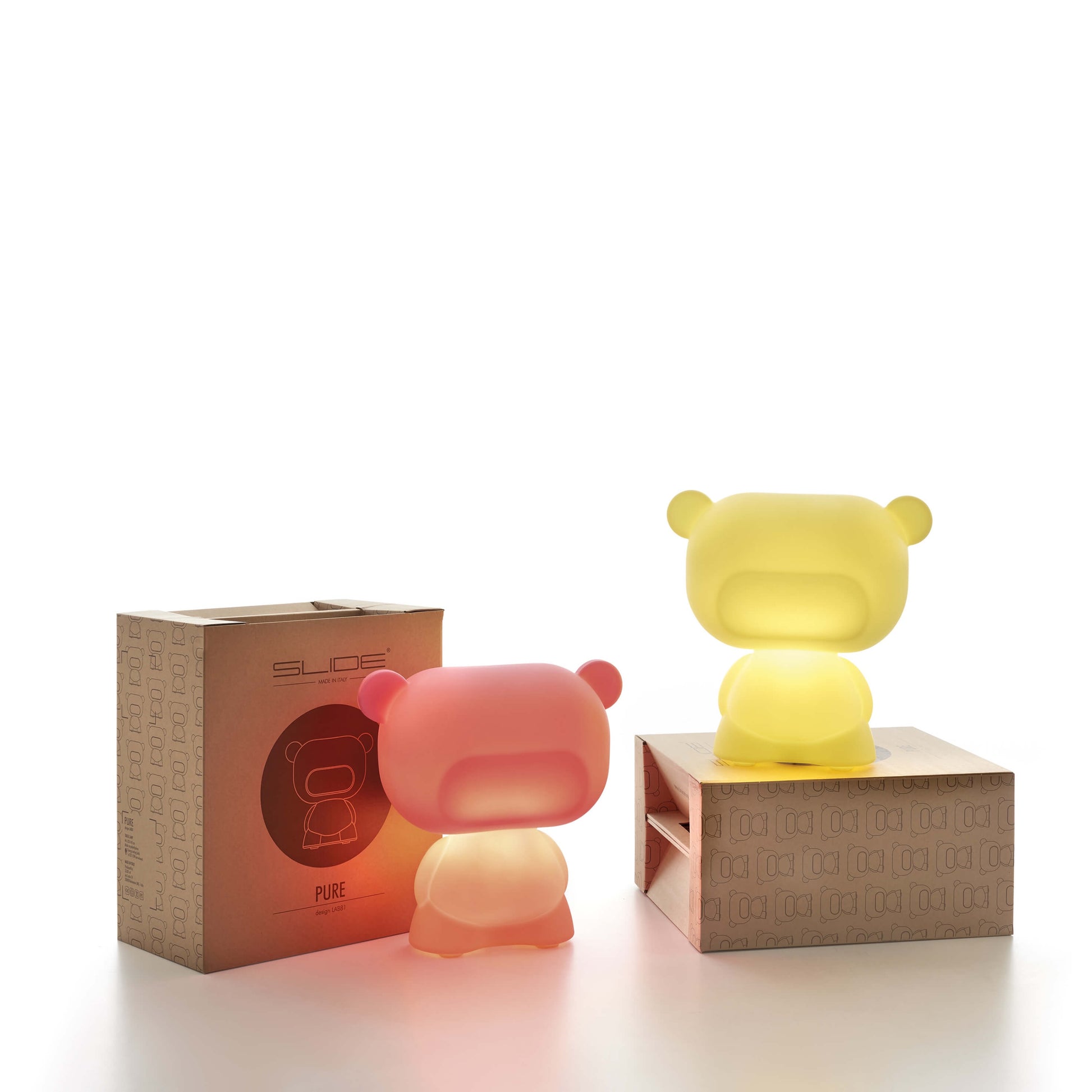 Pure is a best seller of the whole Slide production and it makes everyone fall in love, thanks to its tenderness and sympathy. Pure is a table lamp which shape reminds a teddy bear and designed by Lab81. These designers are inspired by Toy Movement principles, a branch of design famous in all over the world. The funny table lamp Pure is made in polyethylene with the technology of rotational moulding. Pure is a colourful and playful product ideal to adults and children.