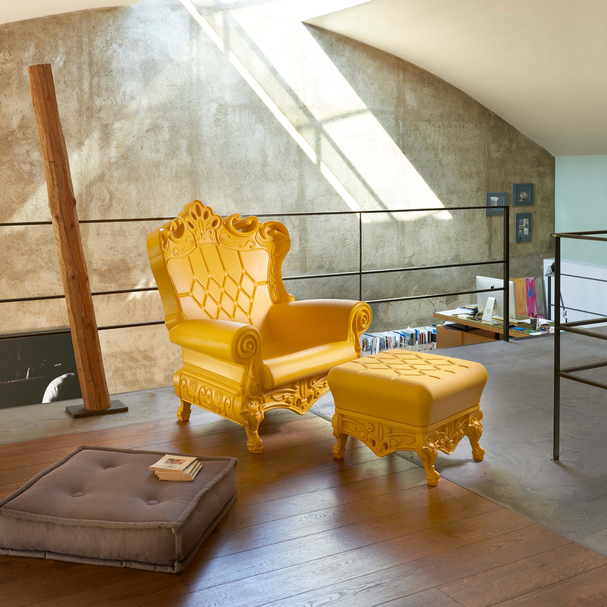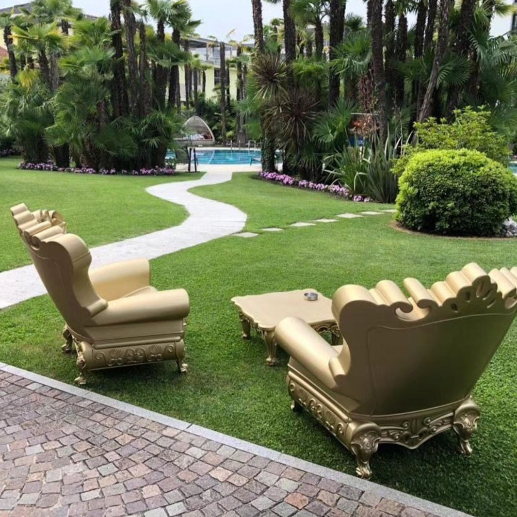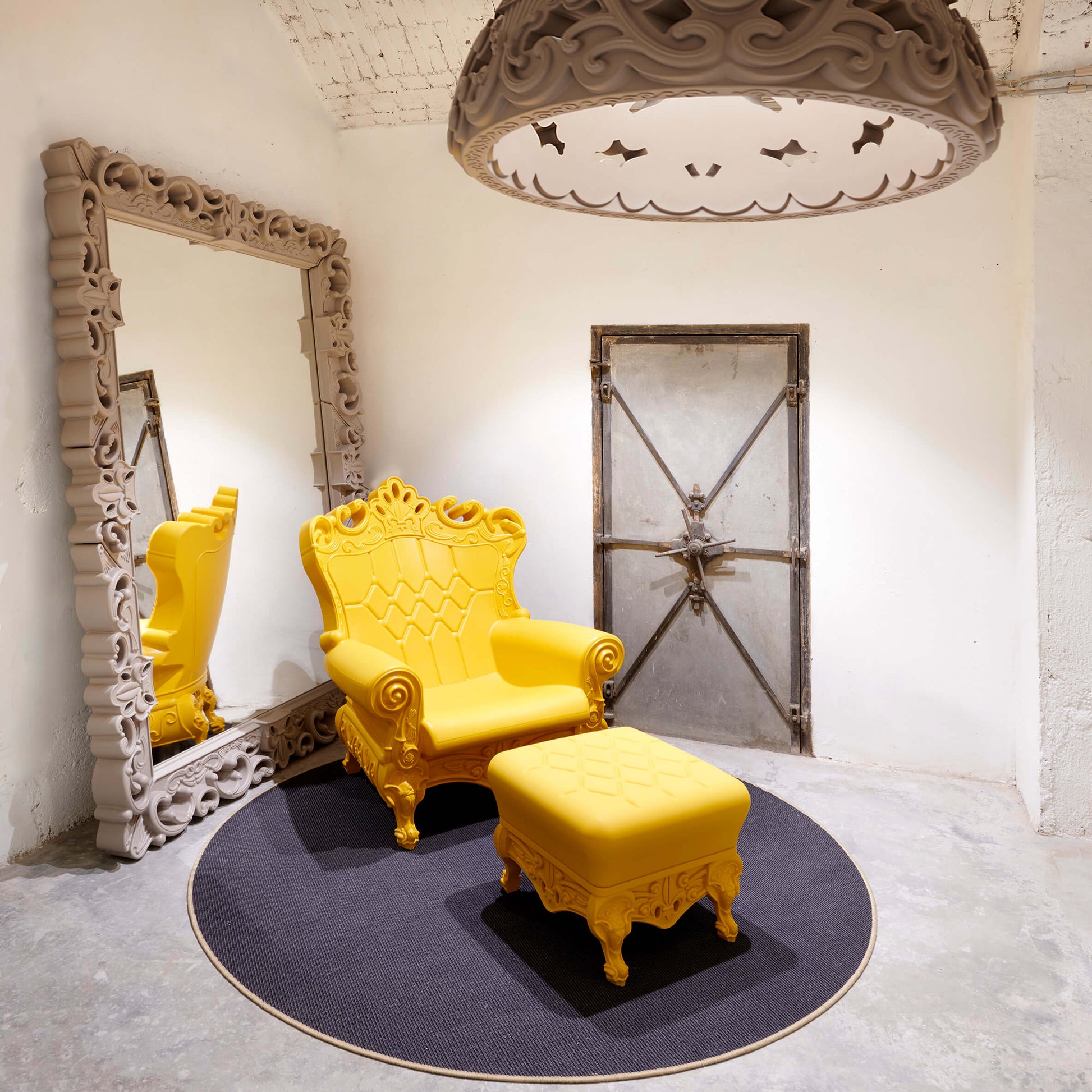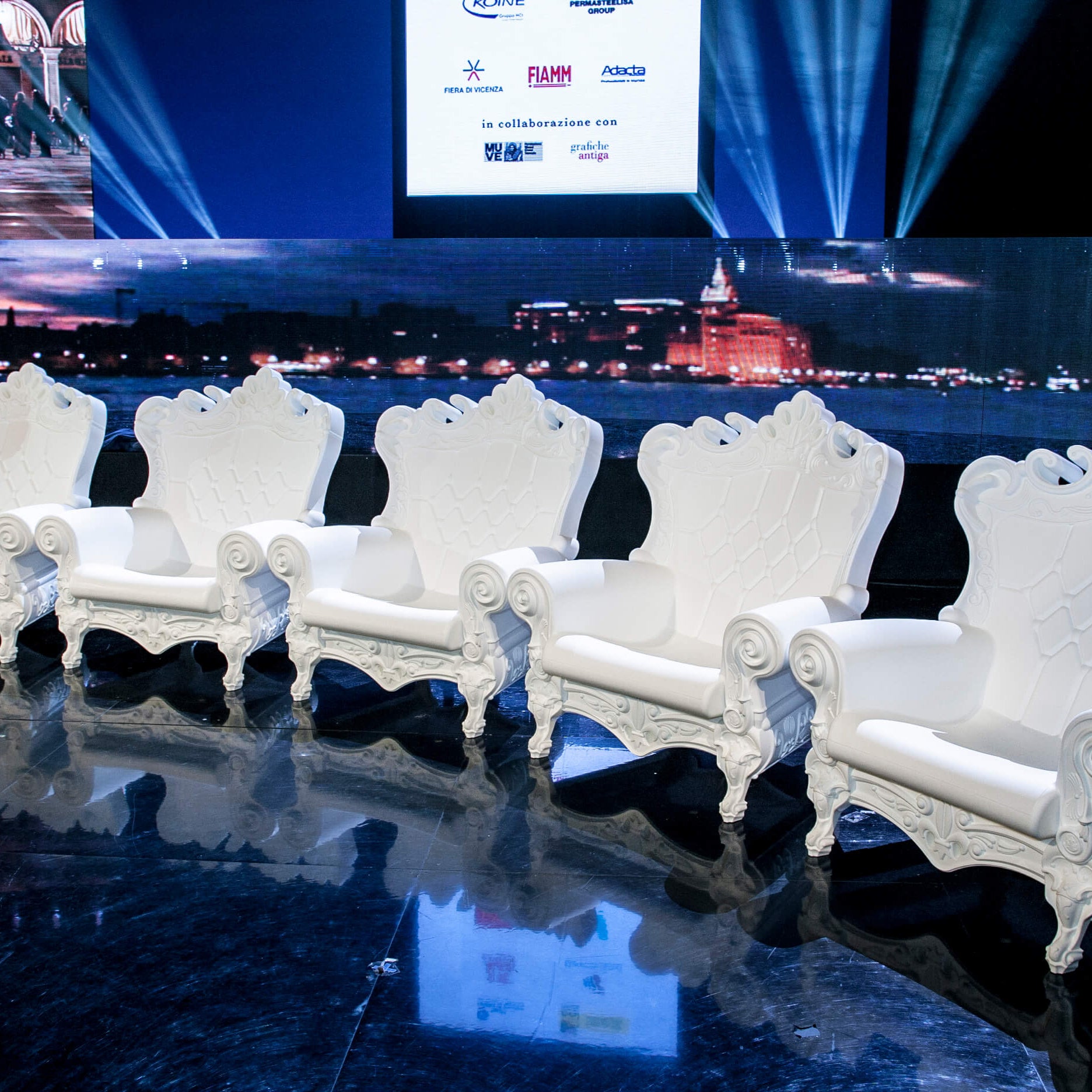 Queen of Love is the unique armchair created by the designer Graziano Moro and Renato Pigatti. The iconic Queen of Love armchair is the first and the most loved product of the whole Design of Love collection: as a throne, Queen of Love crowns everyone who sitting on it. Queen of Love is full in details, as typical baroque style, but it is contemporary, pop and ironic thanks to the material in which it is made, polyethylene. Queen of Love is elegant, attractive, pop and unforgettable, for this reason it is often the protagonist of tv shows and international events.
